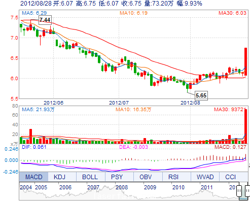 今 開: 6.07 成交量: 731988手 振 幅: 11.07% 最 高: 6.75 成交額: 48695.84萬 換手率: 7.74% 最 低: 6.07 總市值: 70.50億 市凈率: 2.51 昨 收: 6.14 流通市...