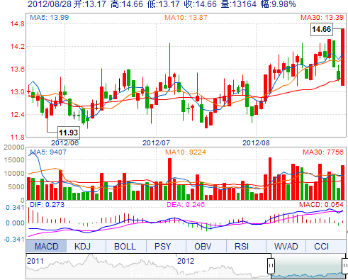 今 開: 13.17 成交量: 13164手 振 幅: 11.18% 最 高: 14.66 成交額: 1880.84萬 換手率: 3.95% 最 低: 13.17 總市值: 9.82億 市凈率: 3.15 昨 收: 13.33 流通...