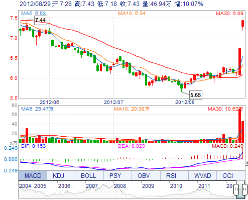 今 開: 7.28 成交量: 469426手 振 幅: 3.70% 最 高: 7.43 成交額: 34646.85萬 換手率: 4.96% 最 低: 7.18 總市值: 77.60億 市凈率: 2.76 昨 收: 6.75 流通市...