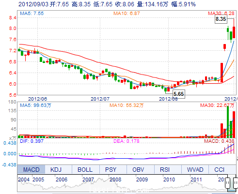 今 開: 7.65 成交量: 1341598手 振 幅: 9.20% 最 高: 8.35 成交額: 106974.84萬 換手率: 14.18% 最 低: 7.65 總市值: 84.18億 市凈率: 3.00 昨 收: 7.61 流通...