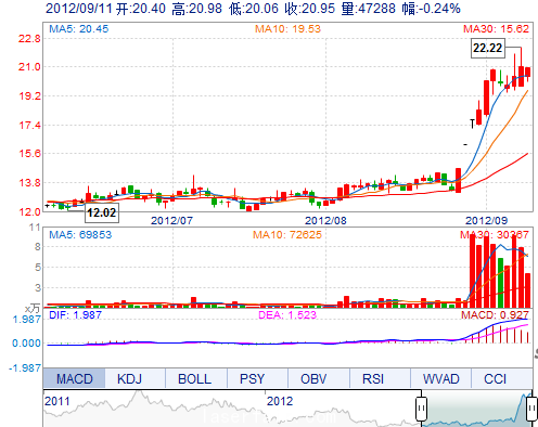 最 高: 20.98 成交額: 9687.19萬(wàn) 換手率: 14.20%