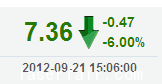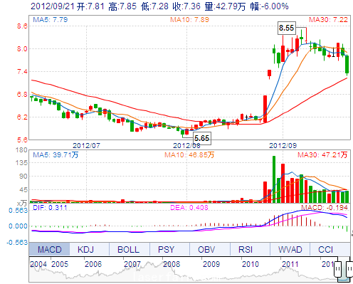 今 開: 7.81 成交量: 427924手 振 幅: 7.28% 最 高: 7.85 成交額: 32220.62萬 換手率: 4.52% 最 低: 7.28 總市值: 76.87億 市凈率: 2.74 昨 收: 7.83 流通市...