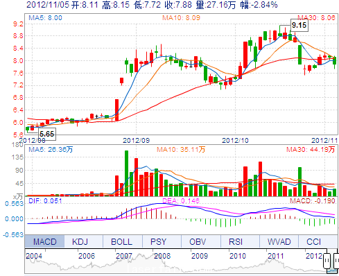 今 開: 8.11 成交量: 271590手 振 幅: 5.30% 最 高: 8.15 成交額: 21389.05萬 換手率: 2.87% 最 低: 7.72 總市值: 82.30億 市凈率: 2.54 昨 收: 8.11 流通市...