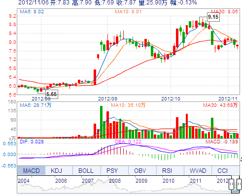 | 今 開: | 7.83 | 成交量: | 259002手 | 振 幅: | 2.66% |