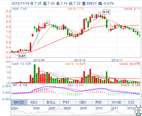 | 今 開: | 7.35 | 成交量: | 99830手 | 振 幅: | 3.54% |