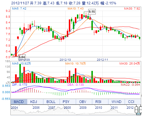 今 開: 7.39 成交量: 124184手 振 幅: 3.36% 最 高: 7.43 成交額: 9061.64萬 換手率: 1.31% 最 低: 7.18 總市值: 76.03億 市凈率: 2.35 昨 收: 7.44 流通市值...
