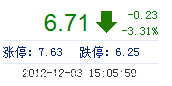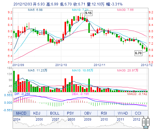 | 今 開: | 6.93 | 成交量: | 12.10萬手 | 振 幅: | 4.18% |