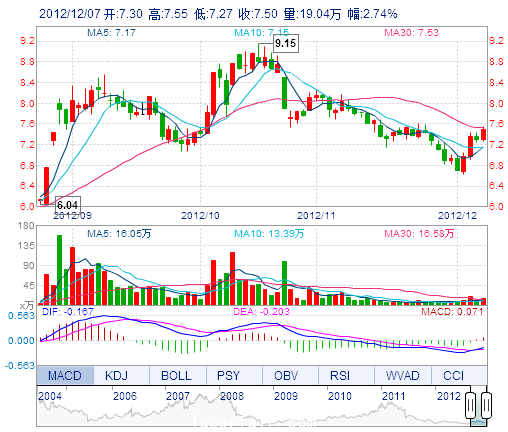 今 開: 7.30 成交量: 19.04萬手 振 幅: 3.84% 最 高: 7.55 成交額: 1.42億元 換手率: 2.01% 最 低: 7.27 總市值: 78.33億 市凈率: 2.42 昨 收: 7.30 流通市值...
