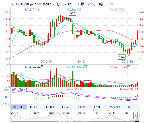 今 開: 7.52 成交量: 32.92萬手 振 幅: 8.40% 最 高: 8.15 成交額: 2.60億元 換手率: 3.48% 最 低: 7.52 總市值: 83.66億 市凈率: 2.58 昨 收: 7.50 流通市值...