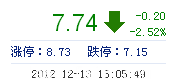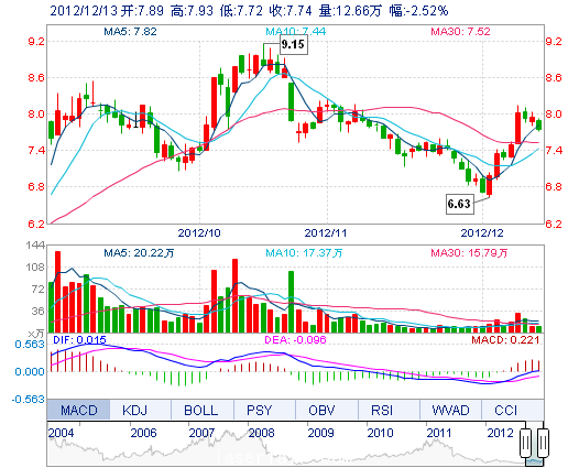 今開: 7.89 成交量: 12.66萬手 振幅: 2.64% 最高: 7.93 成交額: 9886.83萬元 換手率: 1.34% 最低: 7.72 總市值: 80.84億 市凈率: 2.50 昨收: 7.94 流通市值:...