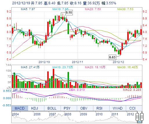今 開: 7.85 成交量: 36.92萬手 振 幅: 6.98% 最 高: 8.40 成交額: 3.03億元 換手率: 3.90% 最 低: 7.85 總市值: 85.22億 市凈率: 2.63 昨 收: 7.88 流通市值...