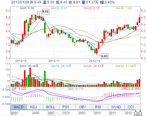 今 開: 8.49 成交量: 51.37萬手 振 幅: 6.46% 最 高: 9.00 成交額: 4.53億元 換手率: 5.43% 最 低: 8.45 總市值: 92.01億 市凈率: 2.84 昨 收: 8.52 流通市值...