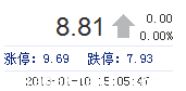 | 昨 收: | 8.81 | 流通市值: | 83.34億 | 市盈率TTM: | 14.46 |