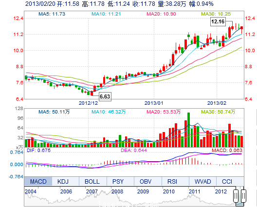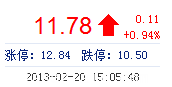 今開: 11.58 成交量: 38.28萬手 振幅: 4.63% 最高: 11.78 成交額: 4.40億元 換手率: 4.05% 最低: 11.24 總市值: 123.03億 市凈率: 3.80 昨收: 11.67 流通市值...