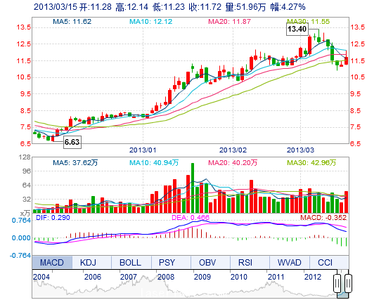 | 最 低: | 11.23 | 總市值: | 122.40億 | 市凈率: | 3.78 |