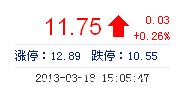 | 昨 收: | 11.72 | 流通市值: | 111.15億 | 市盈率TTM: | 14.87 |