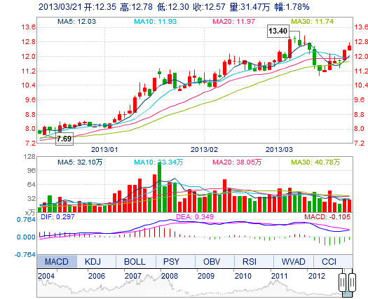| 最 低: | 12.30 | 總市值: | 131.28億 | 市凈率: | 4.05 |