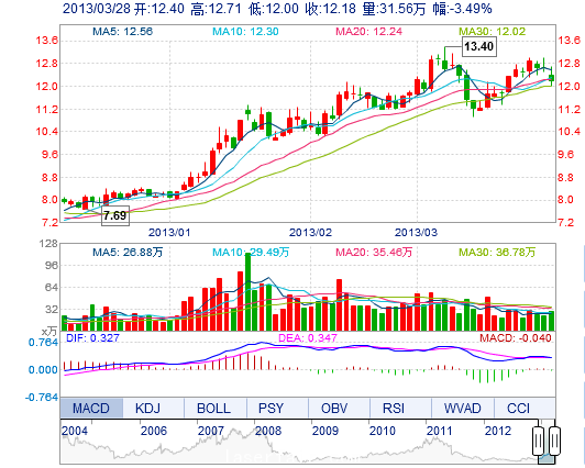 | 今 開: | 12.40 | 成交量: | 31.56萬手 | 振 幅: | 5.63% |