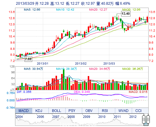 今 開: 12.28 成交量: 40.82萬手 振 幅: 6.98% 最 高: 13.12 成交額: 5.18億元 換手率: 4.32% 最 低: 12.27 總市值: 135.46億 市凈率: 4.18 昨 收: 12.18 流...