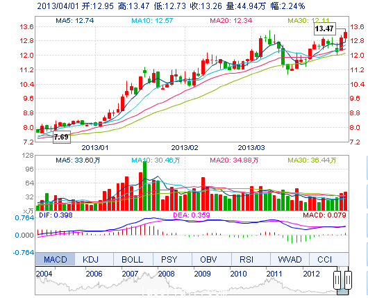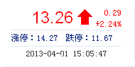 | 今 開: | 12.95 | 成交量: | 44.94萬手 | 振 幅: | 5.71% |