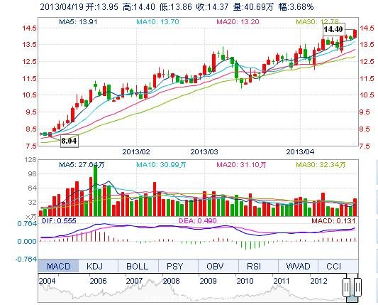 | 今 開: | 13.95 | 成交量: | 40.69萬手 | 振 幅: | 3.90% |