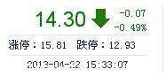 今開: 14.25 成交量: 34.01萬手 振幅: 2.51% 最高: 14.46 成交額: 4.85億元 換手率: 3.60% 最低: 14.10 總市值: 149.35億 市凈率: 4.61 昨收: 14.37 流通市值...