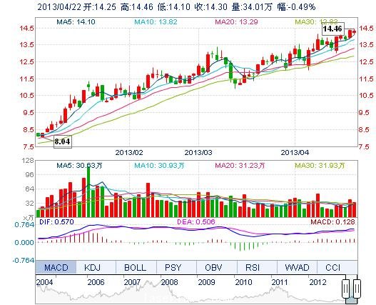 | 最 低: | 14.10 | 總市值: | 149.35億 | 市凈率: | 4.61 |