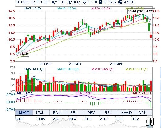 今開: 10.81 成交量: 57.04萬手 振幅: 5.70% 最高: 11.48 成交額: 6.34億元 換手率: 6.03% 最低: 10.81 總市值: 116.76億 市凈率: 3.37 昨收: 11.76 流通市值...