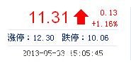 今開: 11.23 成交量: 37.21萬手 振幅: 3.94% 最高: 11.60 成交額: 4.24億元 換手率: 3.94% 最低: 11.16 總市值: 118.12億 市凈率: 3.41 昨收: 11.18 流通市值...