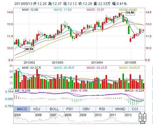 今開: 12.20 成交量: 22.33萬手 振幅: 2.04% 最高: 12.37 成交額: 2.74億元 換手率: 2.36% 最低: 12.12 總市值: 128.36億 市凈率: 3.70 昨收: 12.24 流通市值...