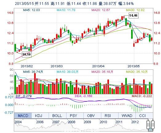 | 最 低: | 11.44 | 總市值: | 123.87億 | 市凈率: | 3.57 |
