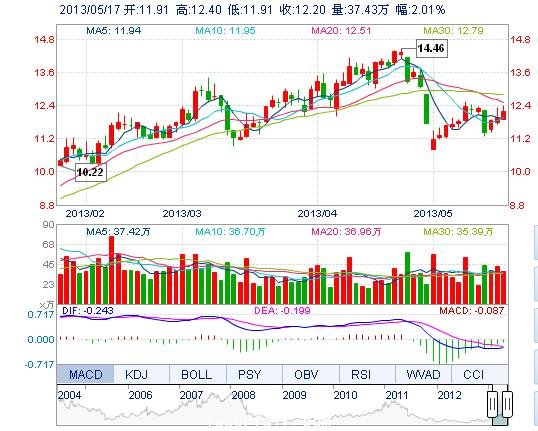今開: 11.91 成交量: 37.43萬手 振幅: 4.10% 最高: 12.40 成交額: 4.55億元 換手率: 3.96% 最低: 11.91 總市值: 127.42億 市凈率: 3.68 昨收: 11.96 流通市值...