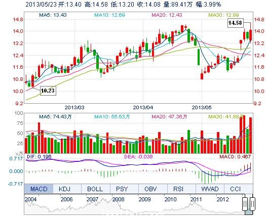 今開: 13.40 成交量: 89.41萬手 振幅: 10.19% 最高: 14.58 成交額: 12.53億元 換手率: 9.46% 最低: 13.20 總市值: 147.05億 市凈率: 4.24 昨收: 13.54 流通市...