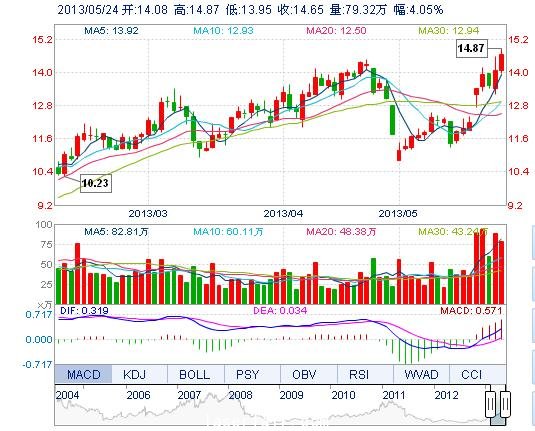 今開: 14.08 成交量: 79.32萬手 振幅: 6.53% 最高: 14.87 成交額: 11.47億元 換手率: 8.39% 最低: 13.95 總市值: 153.00億 市凈率: 4.42 昨收: 14.08 流通市...