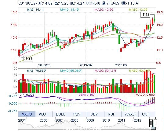 今開: 14.69 成交量: 74.84萬手 振幅: 6.55% 最高: 15.23 成交額: 10.96億元 換手率: 7.92% 最低: 14.27 總市值: 151.23億 市凈率: 4.36 昨收: 14.65 流通市...