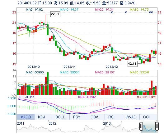 | 今 開: | 15.00 | 成交量: | 5.38萬手 | 振 幅: | 6.94% |