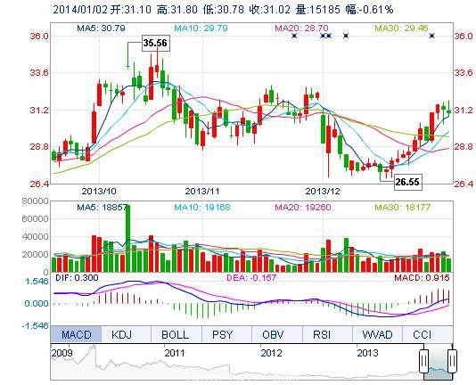 | 最 高: | 31.80 | 成交額: | 4738.10萬(wàn)元 | 換手率: | 0.45% |