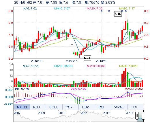 今開: 7.61 成交量: 7.06萬手 振幅: 4.86% 最高: 7.88 成交額: 5454.57萬元 換手率: 3.54% 最低: 7.51 總市值: 15.56億 市凈率: 3.17 昨收: 7.61 流通市值: ...