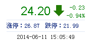 | 今 開: | 24.16 | 成交量: | 1.55萬手 | 振 幅: | 2.42% |