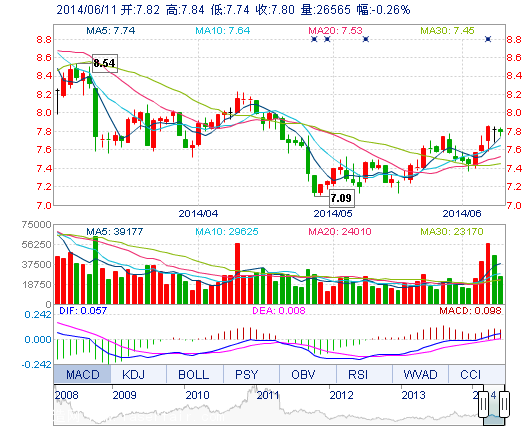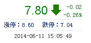 | 今 開: | 7.82 | 成交量: | 2.66萬手 | 振 幅: | 1.28% |