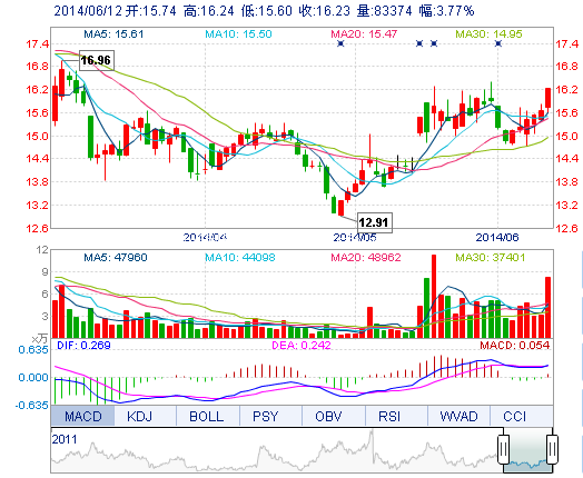 | 最 高: | 16.24 | 成交額: | 1.34億元 | 換手率: | 6.22% |
