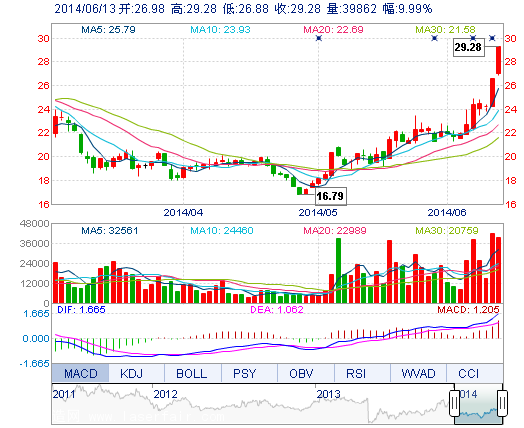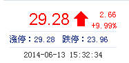 | 最 高: | 29.28 | 成交額: | 1.13億元 | 換手率: | 14.95% |
