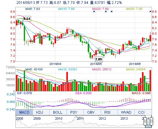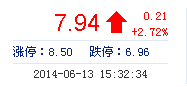 | 今 開: | 7.73 | 成交量: | 6.38萬手 | 振 幅: | 4.79% |