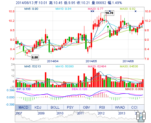 | 今 開: | 10.01 | 成交量: | 8.67萬手 | 振 幅: | 4.97% |