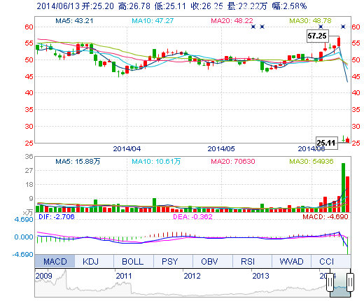 | 今 開: | 25.20 | 成交量: | 23.22萬手 | 振 幅: | 6.53% |