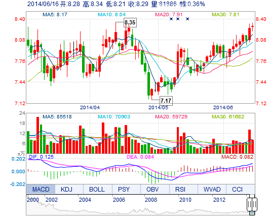 | 今 開: | 8.28 | 成交量: | 8.19萬手 | 振 幅: | 1.57% |