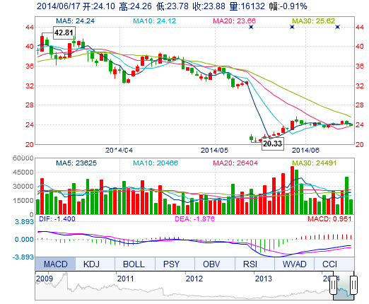 | 最 低: | 23.78 | 總市值: | 155.70億 | 市凈率: | 5.94 |