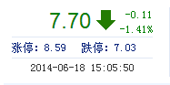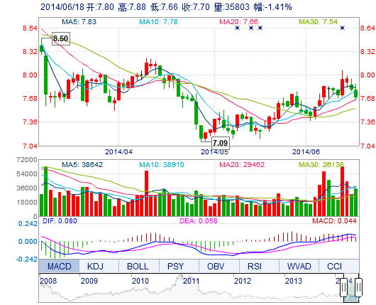 | 今 開: | 7.80 | 成交量: | 3.58萬手 | 振 幅: | 2.82% |
