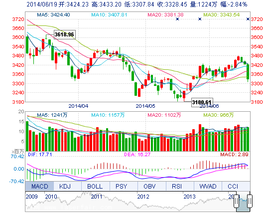 | 昨 收: | 3425.77 | 最 低: | 3307.84 |