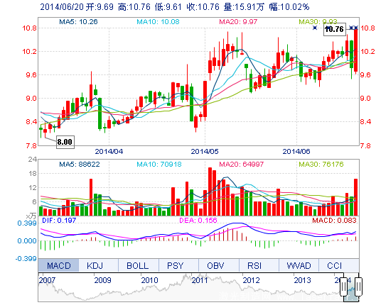 | 最 高: | 10.76 | 成交額: | 1.68億元 | 換手率: | 7.99% |